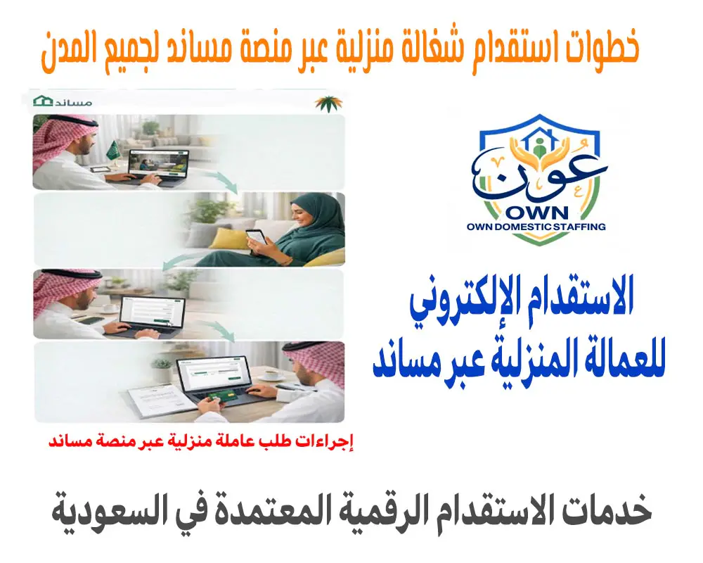 يتم تنفيذ جميع إجراءات استقدام الشغالات في عون للاستقدام من خلال منصة مساند، وهي المنصة الرسمية المعتمدة في المملكة لتنظيم عمليات الاستقدام، مما يضمن الشفافية وحفظ الحقوق في جميع المراحل.